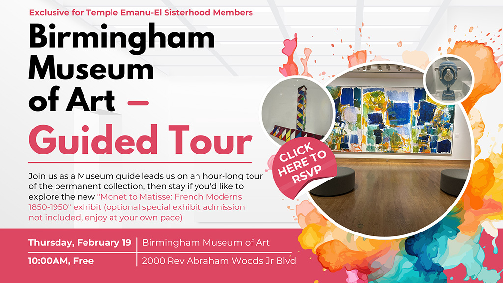 This Week at Temple Emanu-El: Monday, February 2 – Congregational Town Hall with Rabbi Michael Weinstein at 6:15 PM | Wednesday, February 4 – Sewing Group at 10:00 AM, Mid-Week Hebrew School at 3:45 PM | Friday, February 6 – Family Shabbat Service with participation from our 4th and 5th graders at 6:00 PM | Saturday, February 7 – Torah Study at the Temple at 9:00 AM, Shabbat Morning Service at 10:00 AM | Sunday, February 8 – Religious School at 9:30 AM