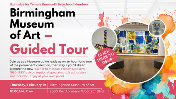 Sisterhood member exclusive: Guided tour at the Birmingham Museum of Art on Thursday, February 19 at 10am!
